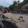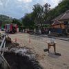 Ein Linienbus stand quer über die Fahrbahn und konnte weder vor noch zurück, mittels Seilwinde und Umlenkrolle wurde der Bus wieder auf die Fahrbahn manövriert.