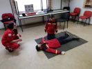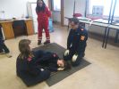 Unter den aufmerksamen und geschulten Augen von Mitgliedern des feuerwehrmedizinischen Dienstes, mussten von den Kids unter anderen die stabile Seitenlage sowie das Anlegen eines Druckverbandes durchgeführt werden.