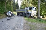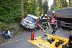 - Ein verunfallter Lkw dessen Lenker regungslos im Fahrzeug saß.