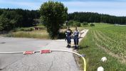 Mittels 2 Tragkraftspritzen wurde eine Löschwasserversorgung vom ca. 500m entfernten Badeteich hergestellt.