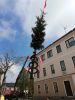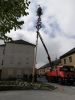 Die ca. 23 Meter Hohe Fichte wurde von den 9 Feuerwehrmitgliedern noch mit Reisigkränzen und Girlanden geschmückt und zum Abschluss mit einem wunderschönen Wipfel versehen. Danach wurde der Baum mit Unterstützung der Zimmerei EDER im Ortszentrum aufgestellt.