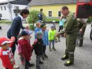 Vor der eigentlichen Übung besuchte einige Trupp´s die Gruppen um den Kindern das Feuerwehrwesen und die Ausrüstung der Kameraden näher zu bringen. Nach der Vorstellung der Feuerwehr erfolgte die Einsatzübung bei der ein Brand im Kindergartengebäude angenommen wurde. Wie vorgesehen erfolgte durch die Kindergartenpädagoginnen die Evakuierung der Kinder wobei festgestellt werden musste, dass einige Personen fehlte. Unter Verwendung des Atemschutzes wurde die Suche nach den Vermissten durchgeführt. Nachdem die Rettung der Abgängigen abgeschlossen und der angenommene Brand gelöscht war, hatten die Kinder die Möglichkeit mit den Feuerwehrfahrzeugen ins Feuerwehrhaus zu Fahren. Das Angebot wurde natürlich von allen sehr gerne angenommen. Im Feuerwehrhaus wurden den Kindern noch die Fahrzeuge genauer vorgestellt. Sie konnten auch die Löschgeräte ausprobieren.