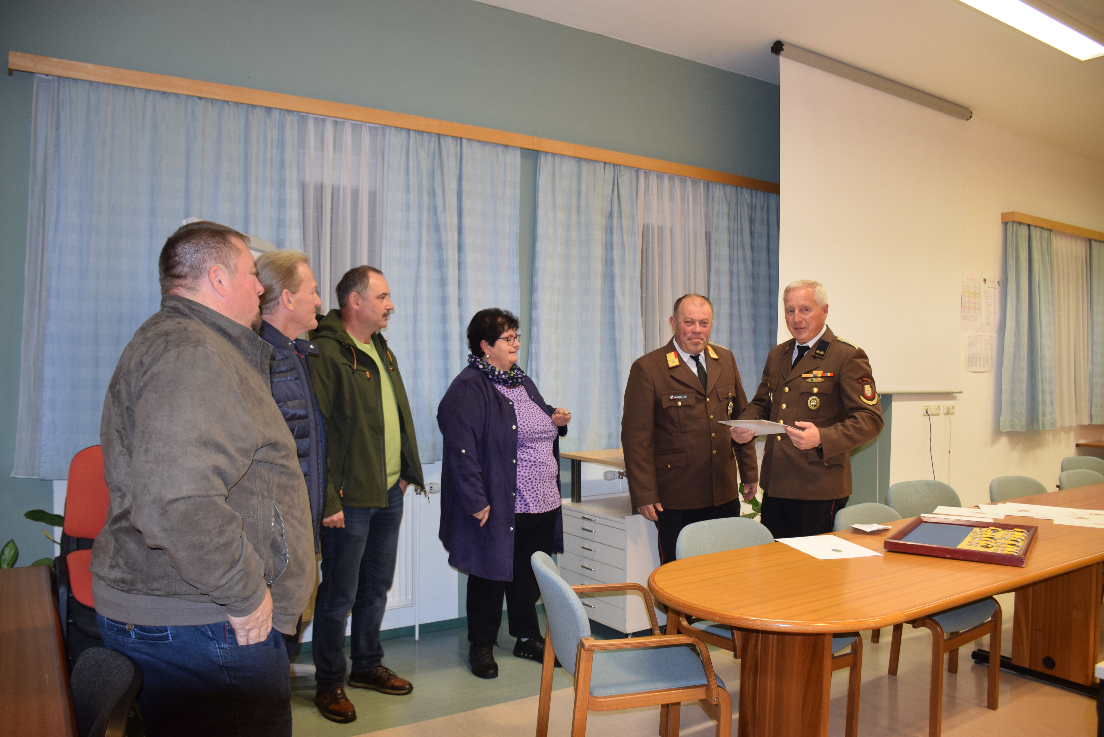 Um der Verleihung einen würdigen Rahmen zu geben, lud das Kommando der Feuerwehr die Mitglieder des Gemeinderates ein. Frau Bürgermeisterin Rosmarie Kloimüller und Vizebürgermeister Gerhard Porranzl überreichten den anwesenden Feuerwehrkameraden die Auszeichnungen und bedankten sich herzlich für deren Einsatzbereitschaft.
