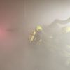 Unter Verwendung des Atemschutzes wurde das Gebäude durchsucht. .