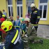 Nach der Vorstellung der Feuerwehr erfolgte die Einsatzübung bei der ein Brand im Kindergartengebäude angenommen wurde. Wie vorgesehen erfolgte durch die Betreuerinnen die Evakuierung der Kinder.