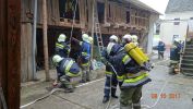 Simuliert wurde ein Brand eines Landwirtschaftlichen Gebäudes mit mehreren vermissten Personen. Mit Atemschutztrupps wurde das Gebäude durchsucht und die verletzten Personen dem Samariterbund übergeben.