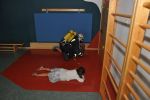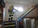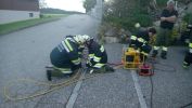 2 Trupps der FF-St. Oswald mussten einen Keller nach vermissten Personen durchsuchen und diese auch retten. Die größte Hürde stellte eine Frischhaltefolie die auf der Atemschutzmaske angebracht wurde, dadurch war die Sicht sehr stark eingeschränkt. Das Übungsziel lag darin sich nur durch tasten des Bodens, in einem Raum mit sehr stark eingeschränkter Sicht, fortzubewegen.