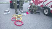 Nach der Präsentation wurde in den praktischen Teil übergegangen. Es wurden zwei Stationen aufgebaut wobei eine Gruppe den richtigen Umgang mittels Hebekissen und Rangierwagen übte, die zweite Gruppe festigte das Arbeiten mittels hydraulischen Gerät (Schere, Spreizer und. Zylinder).