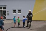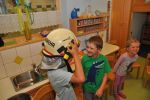 Vor Übungsbeginn wurde den Kindern einige wesentliche Punkte des Feuerwehrwesens erklärt, anschließend durften sie die Einsatzbekleidung anlegen.