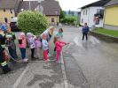 Vor der eigentlichen Übung besuchte einige Trupp´s die Gruppen um den Kindern das Feuerwehrwesen und die Ausrüstung der Kameraden näher zu bringen. Nach der Vorstellung der Feuerwehr erfolgte die Einsatzübung bei der ein Brand im Kindergartengebäude angenommen wurde. Wie vorgesehen erfolgte durch die Kindergartenpädagoginnen die Evakuierung der Kinder wobei festgestellt werden musste, dass einige Personen fehlte. Unter Verwendung des Atemschutzes wurde die Suche nach den Vermissten durchgeführt. Nachdem die Rettung der Abgängigen abgeschlossen und der angenommene Brand gelöscht war, hatten die Kinder die Möglichkeit mit den Feuerwehrfahrzeugen ins Feuerwehrhaus zu Fahren. Das Angebot wurde natürlich von allen sehr gerne angenommen. Im Feuerwehrhaus wurden den Kindern noch die Fahrzeuge genauer vorgestellt. Sie konnten auch die Löschgeräte ausprobieren.